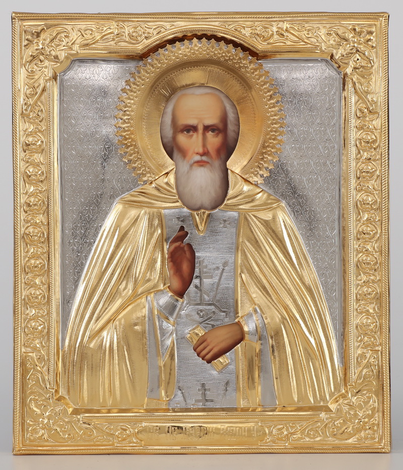Икона фото в ризе 24х30, риза №191 золочение Сергий Радонежский