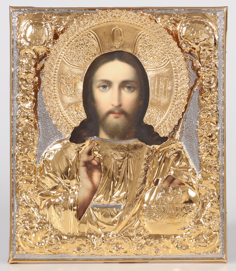 Икона фото в ризе 24х30, риза №76 золочение Спаситель