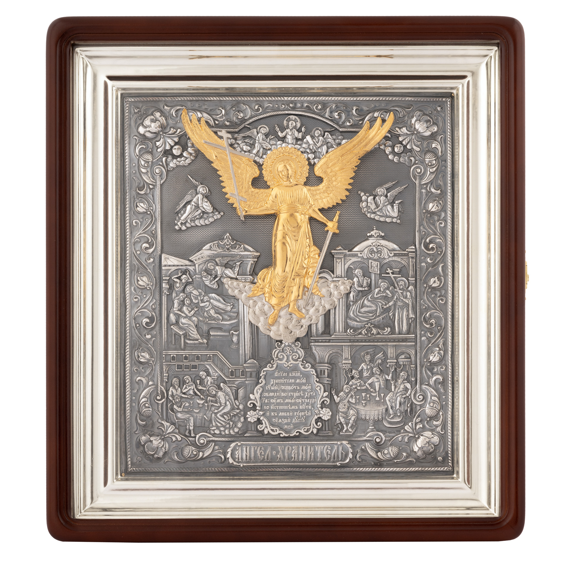 Икона гальванопластика в киоте 24х30 риза №264, черненое серебрение, киот №1 Ангел-Хранитель