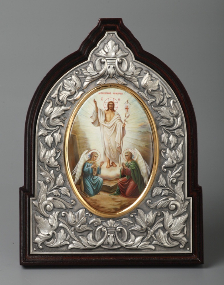 Икона именная №11 гальванопластика, живопись в деревянной рамке / золочение / серебро Воскресение Христово (УИН)