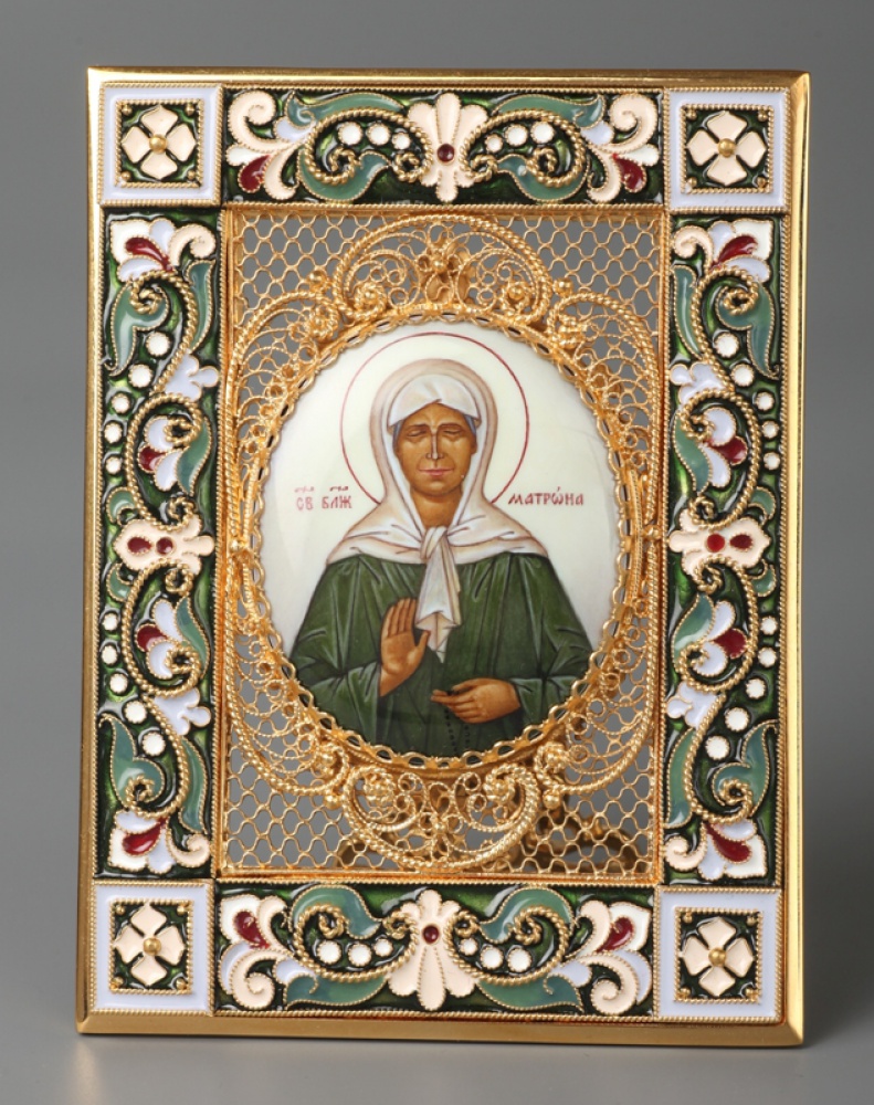 Икона именная №16 филигрань, эмаль, финифть / золочение / Матрона