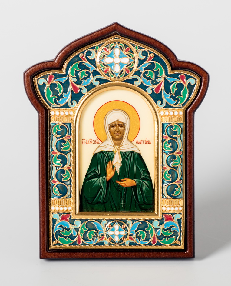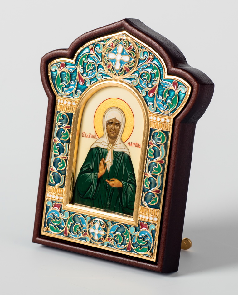 Икона именная №20 живопись, гальванопластика, эмаль в деревянной рамке / золочение