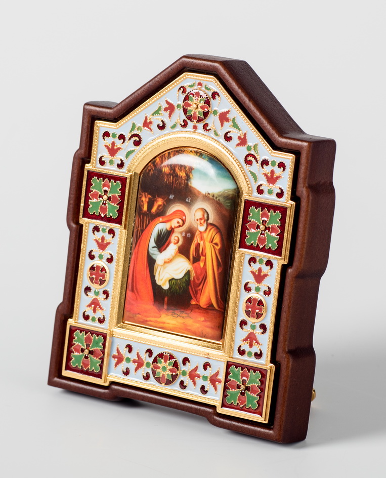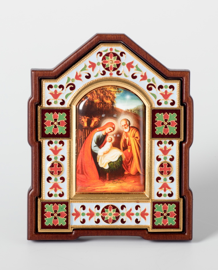 Икона именная №21 деколь, гальванопластика, эмаль в деревянной рамке / золочение / Рождество Христово