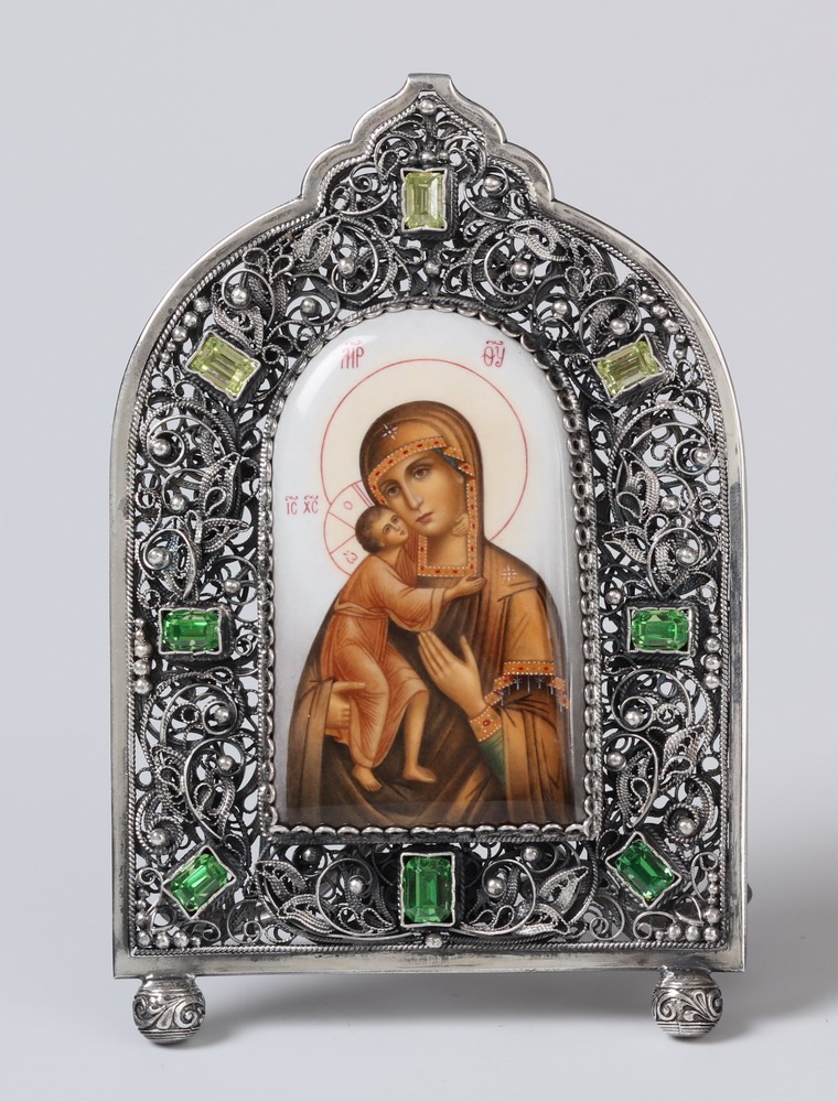Икона именная №22 финифть, филигрань серебро Феодоровская БМ (УИН)
