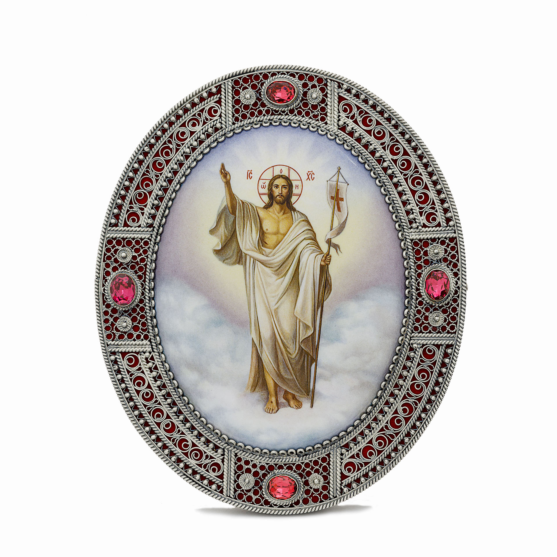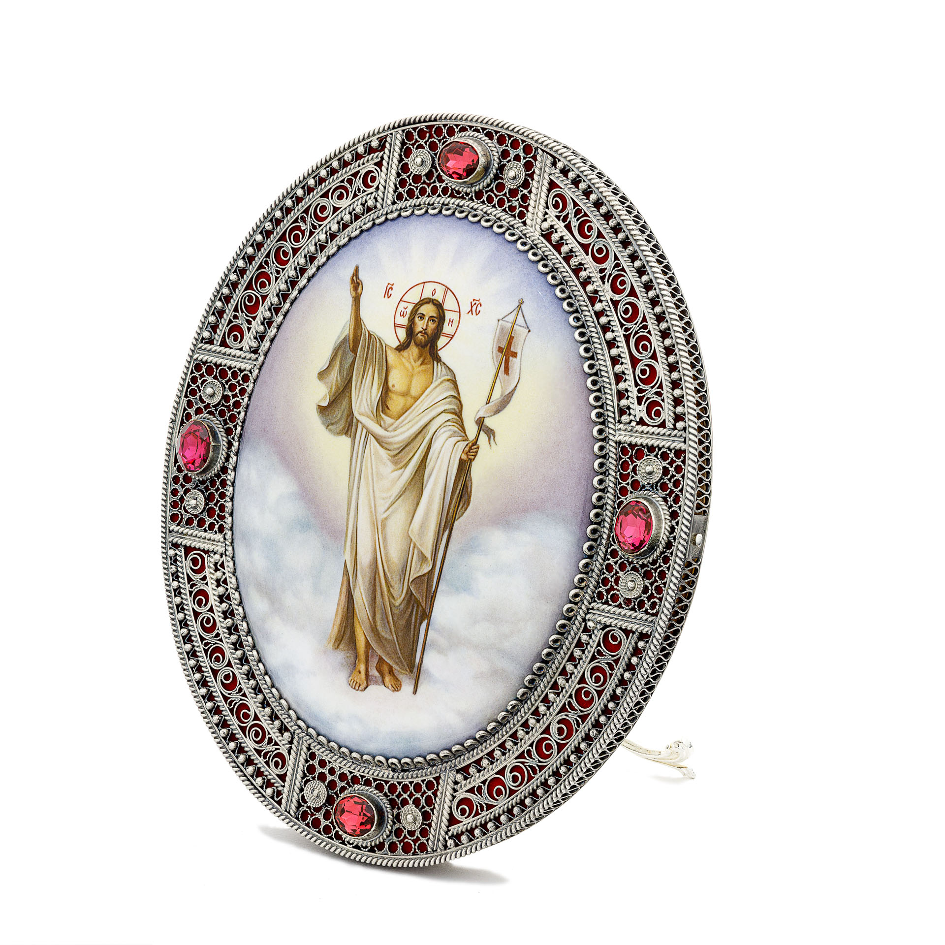 Икона именная №24 большая деколь, филигрань в деревянной рамке / серебрение / Воскресение Христово