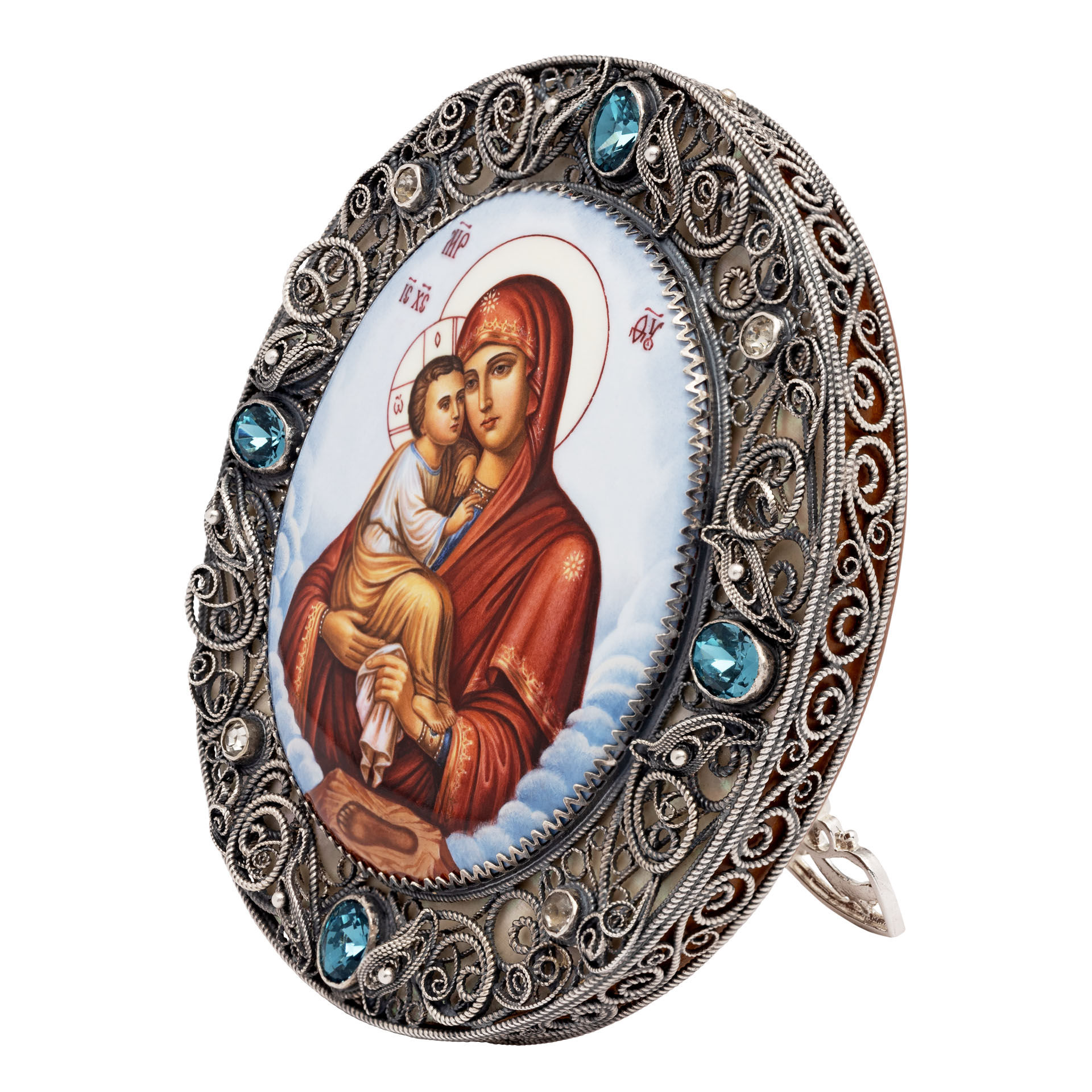 Икона именная №24 финифть, филигрань в деревянной рамке / серебрение / Почаевская