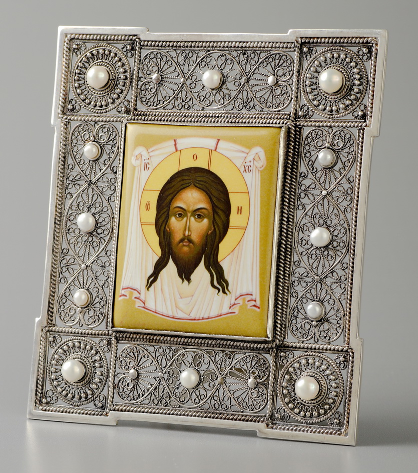 Икона именная №27 деколь, филигрань серебро