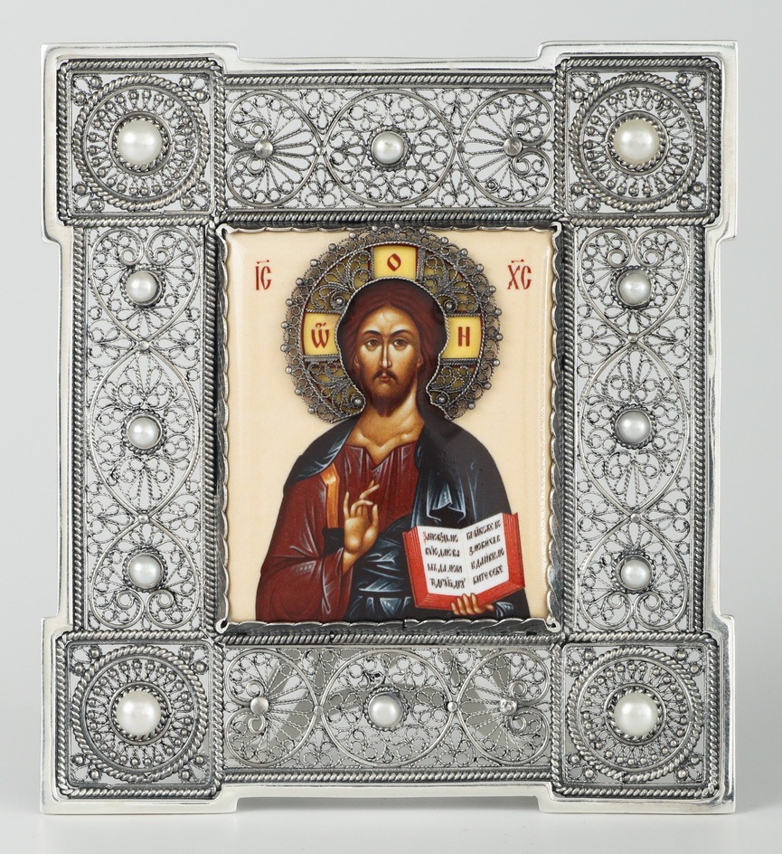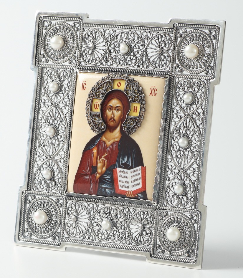 Икона именная №27 деколь, филигрань серебро Господь Вседержитель (УИН)