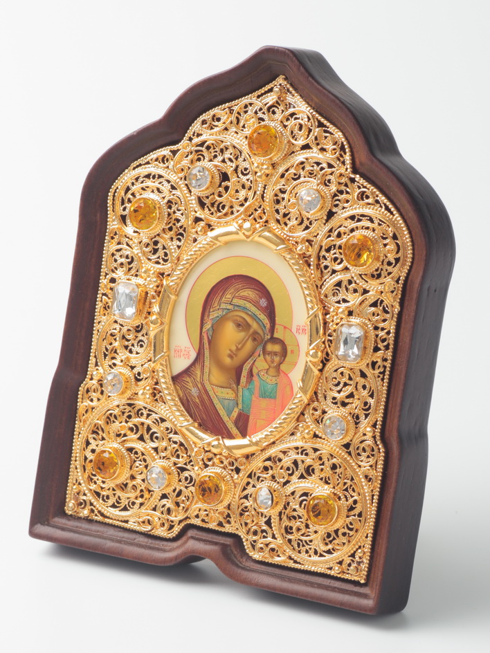 Икона именная №31 живопись, филигрань в деревянной рамке / золочение / Казанская БМ