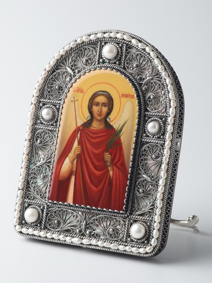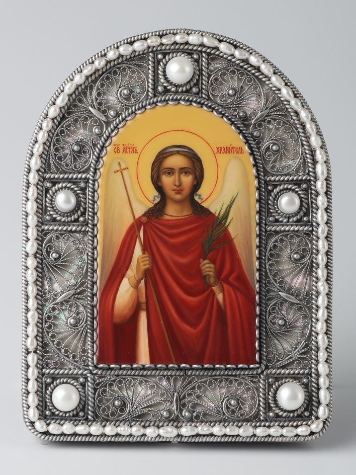 Икона именная №40 живопись, филигрань в деревянной рамке, серебро Ангел-Хранитель (УИН)