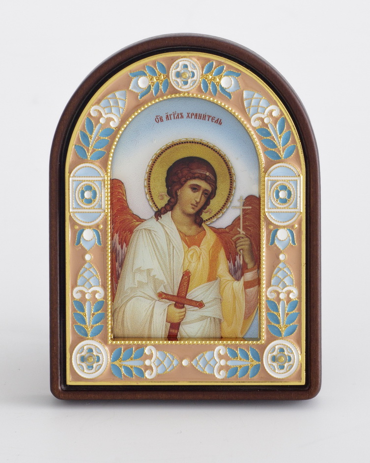 Икона именная №42 печать эмалированная, гальванопластика, эмаль в деревянной рамке / золочение, электрофорез / Ангел Хранитель