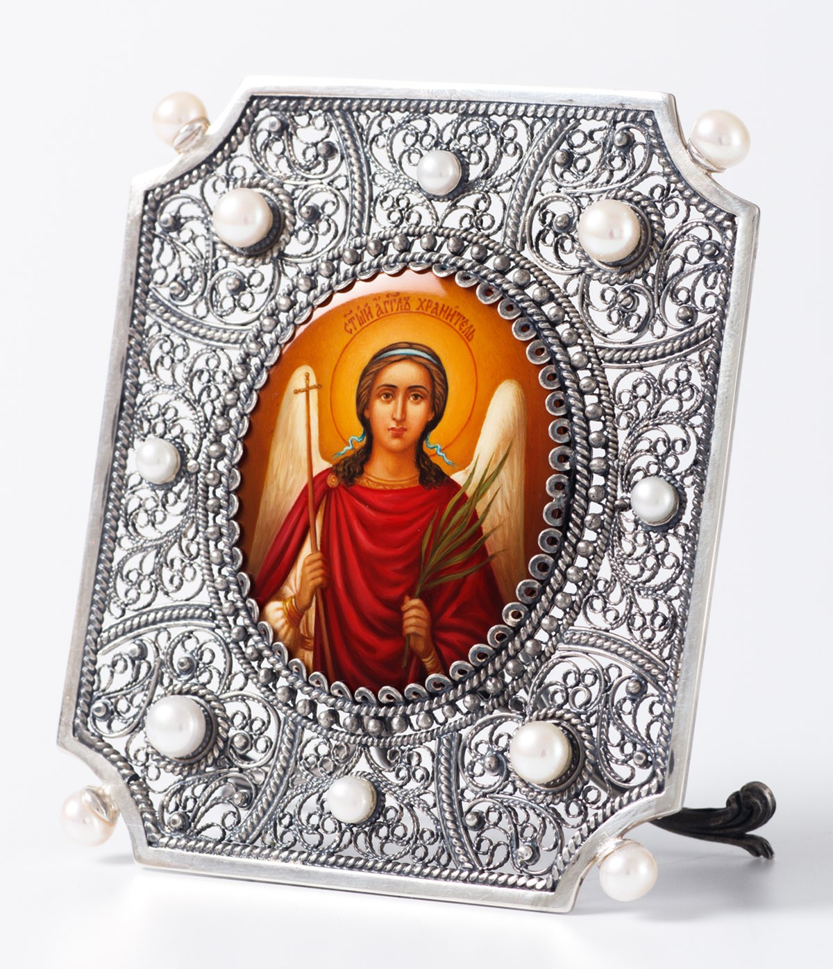 Икона именная №44 живопись, филигрань серебро Ангел Хранитель (УИН)
