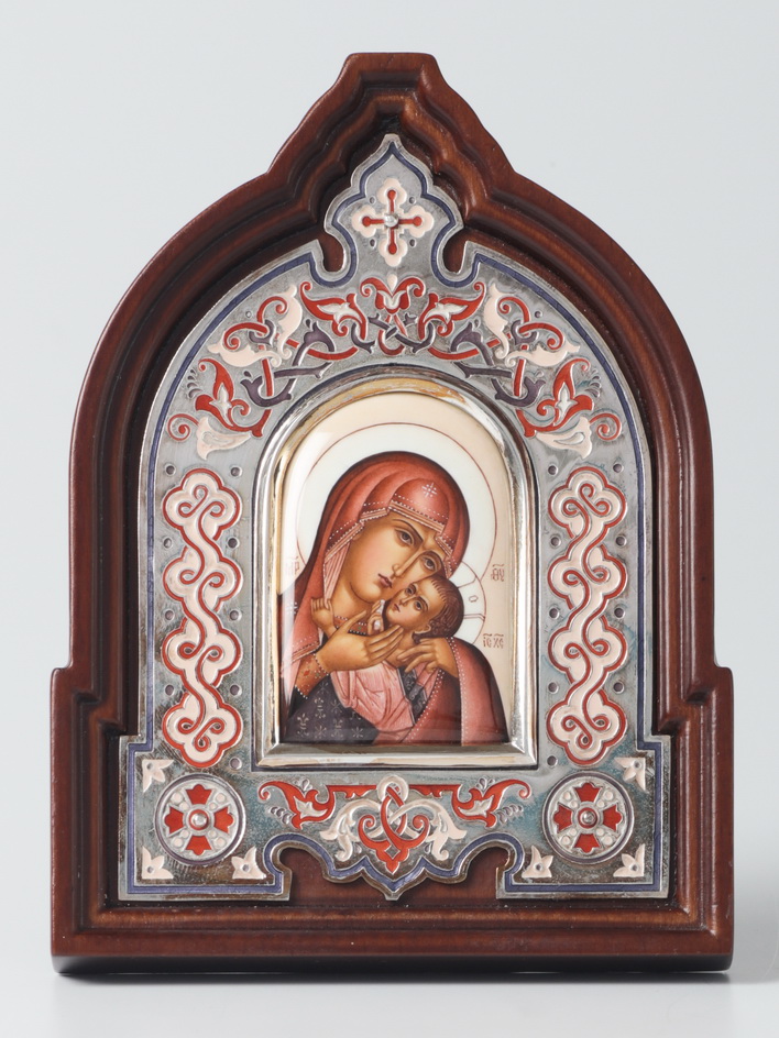 Икона именная №6 эмаль, финифть, в деревянной рамке / серебрение / Касперовская БМ
