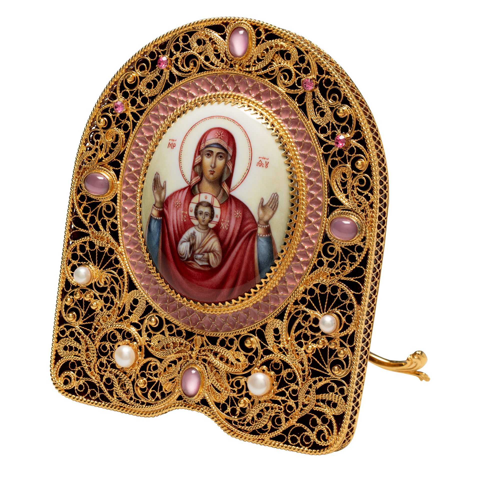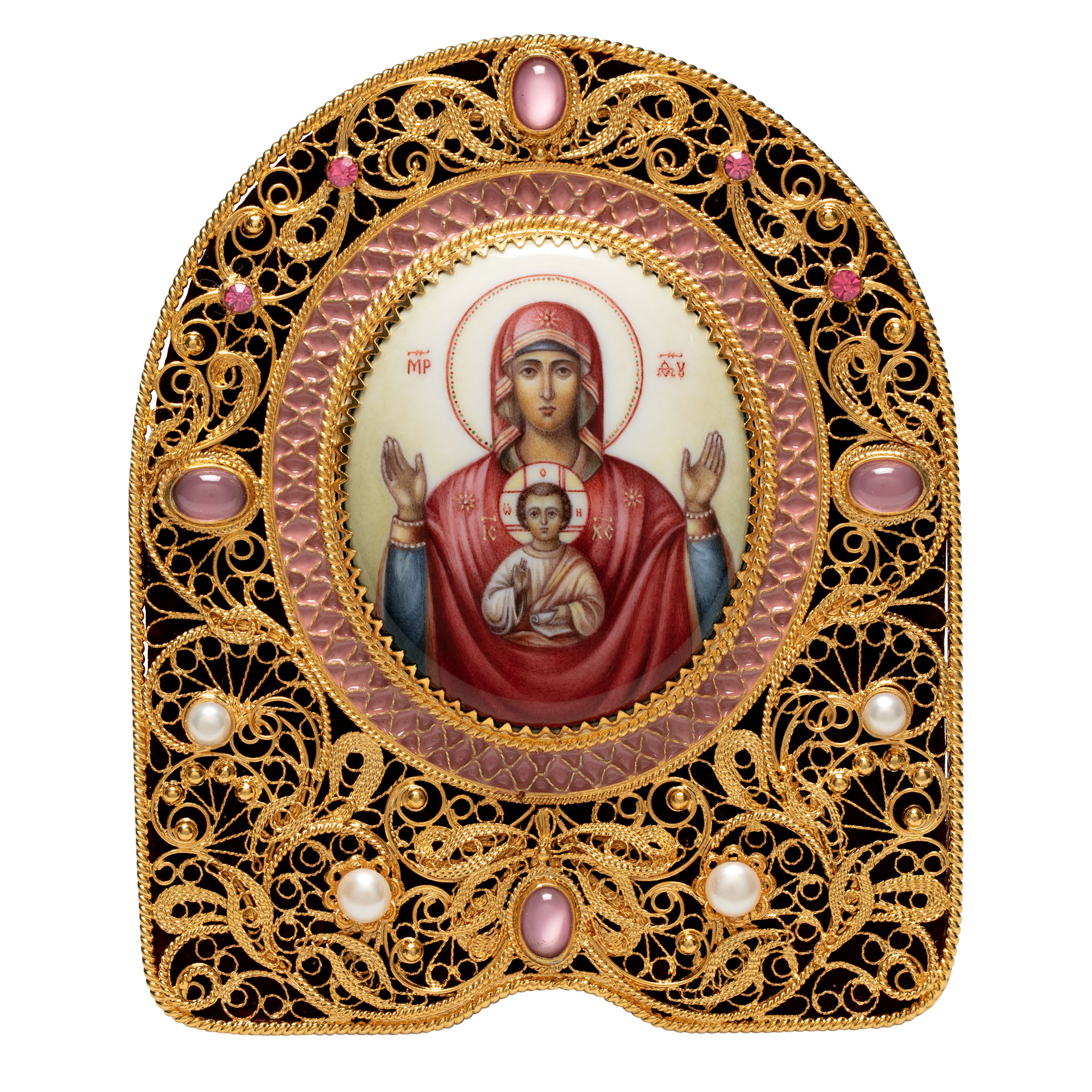 Икона именная №67 финифть, филигрань, эмаль в деревянной рамке / золочение / Знамение,