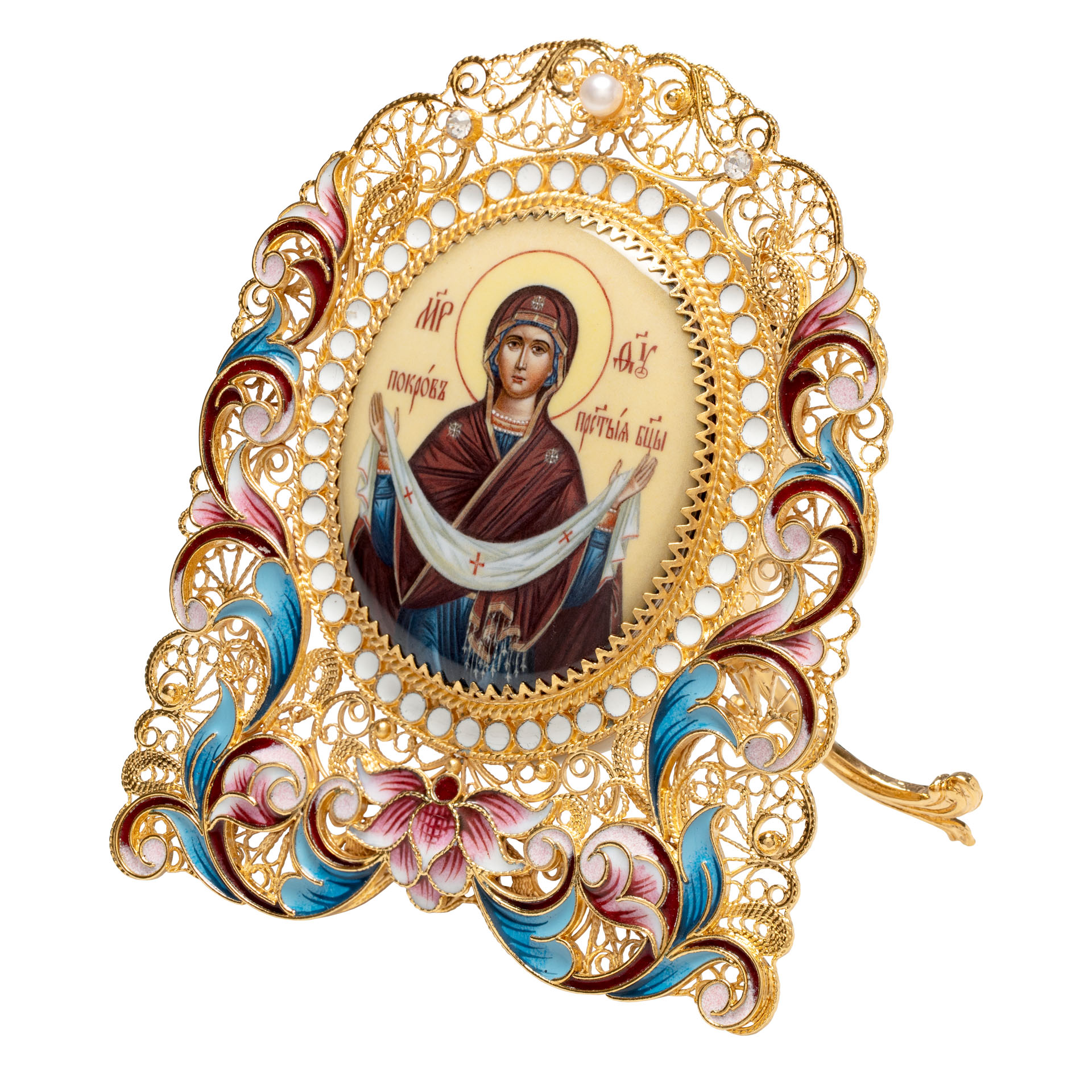 Икона именная №68 деколь, филигрань, роспись в деревянной рамке / золочение / Покров,