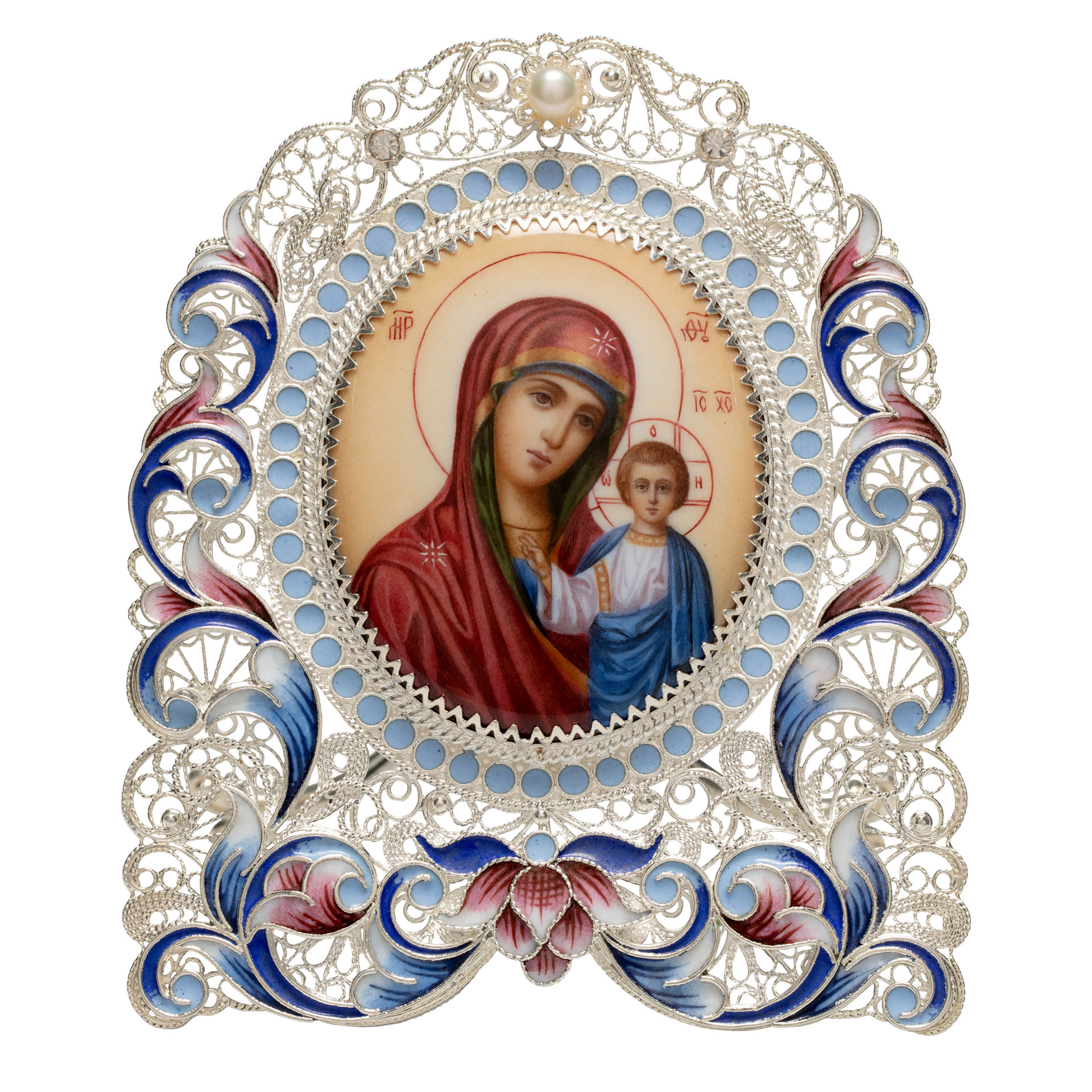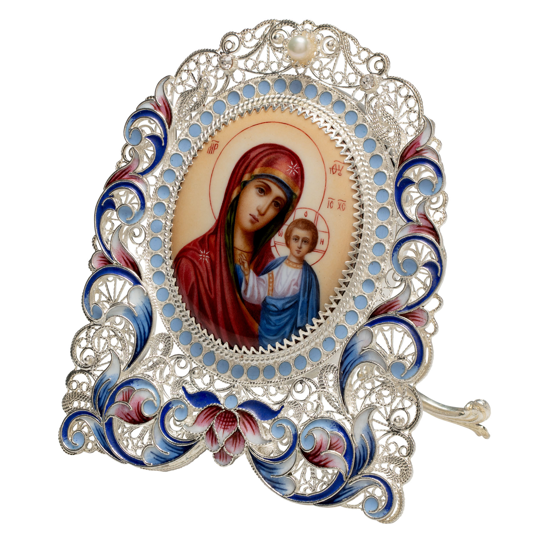 Икона именная №68 финифть, филигрань, роспись в деревянной рамке / серебрение