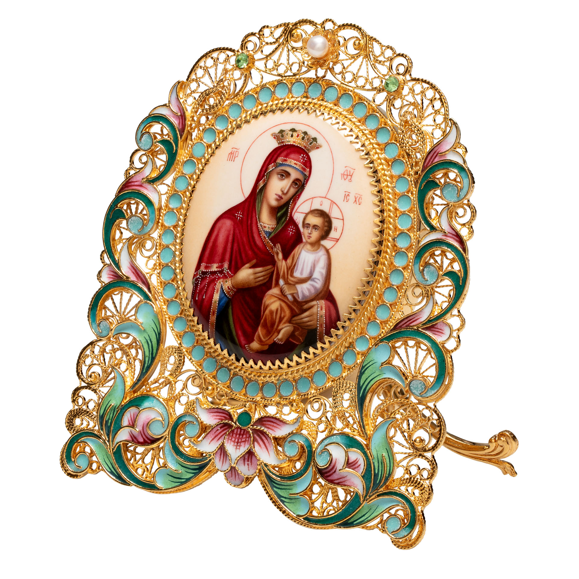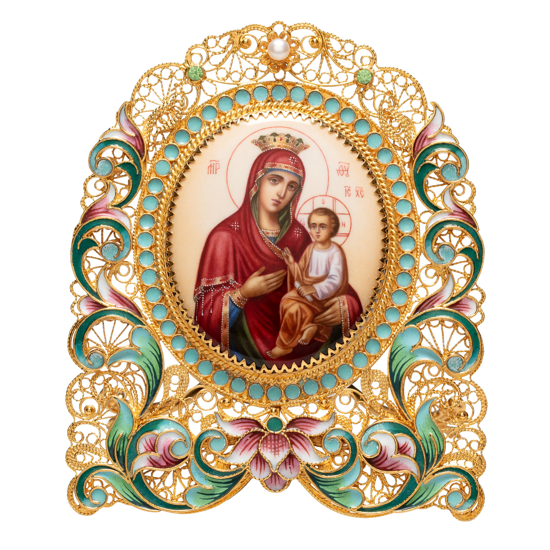 Икона именная №68 финифть, филигрань, роспись в деревянной рамке / золочение