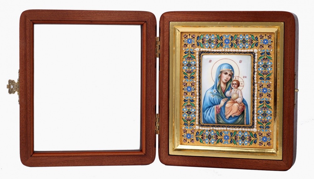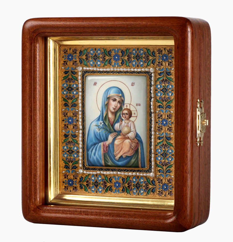 Икона именная филигрань, эмаль, финифть 16*18 серебро / киот / золочение / Неувядаемый Цвет (УИН)