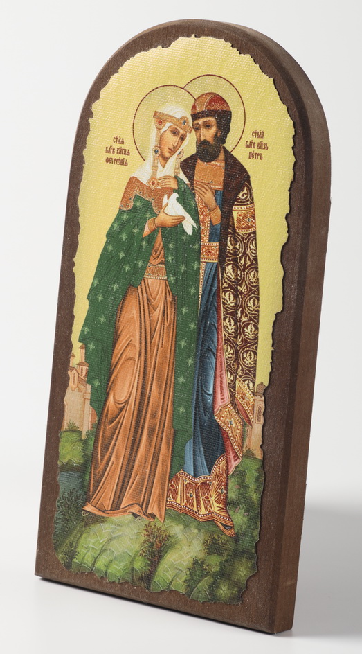 Икона на дереве 11х22 арочная, канвас, упаковка Петр и Феврония