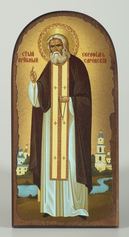 Икона на дереве 11х22 арочная, канвас, упаковка Серафим Саровский (ростовой)