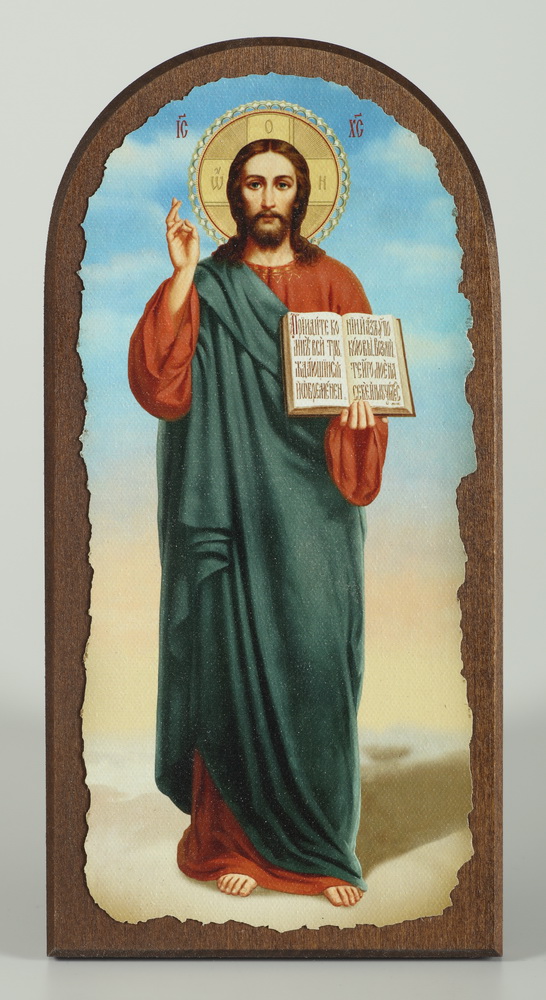 Икона на дереве 11х22 арочная, канвас, упаковка Спаситель