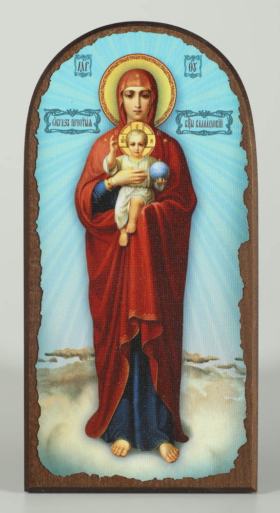 Икона на дереве 11х22 арочная, канвас, упаковка Валаамская БМ (голубой фон)