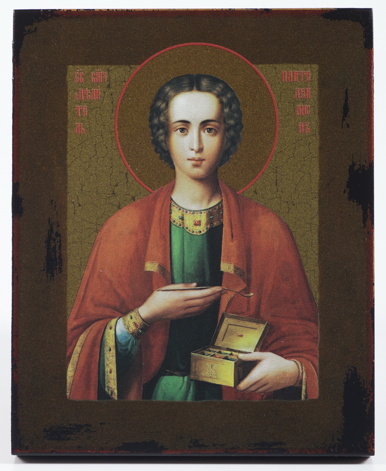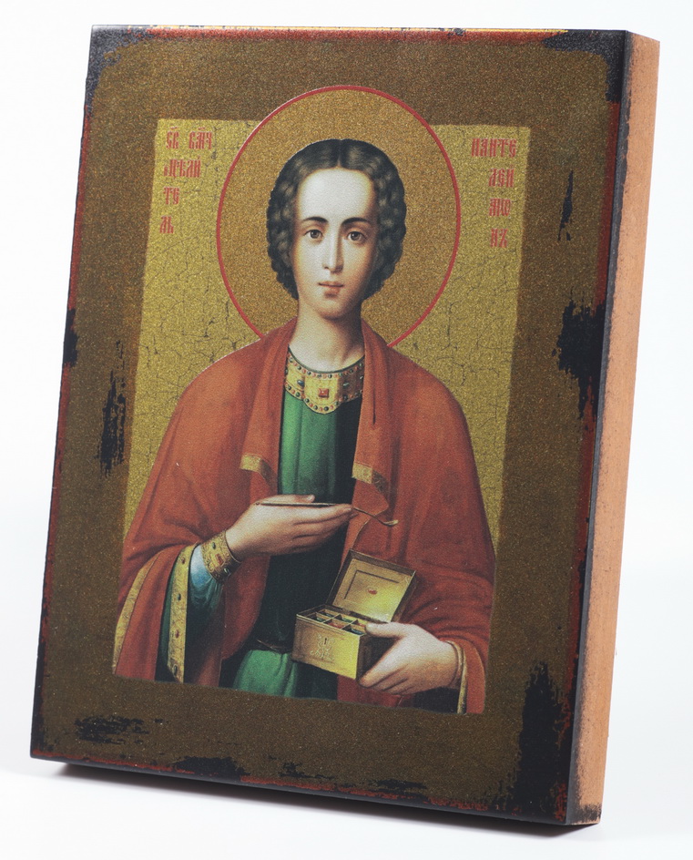 Икона на дереве 13х16 лак №2 Пантелеимон