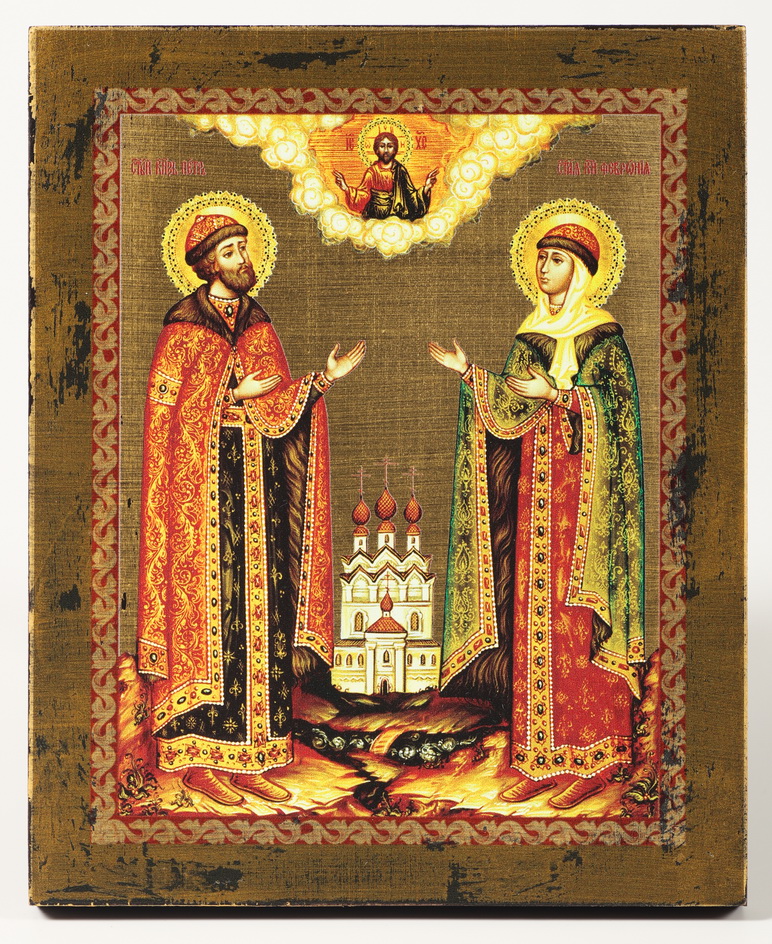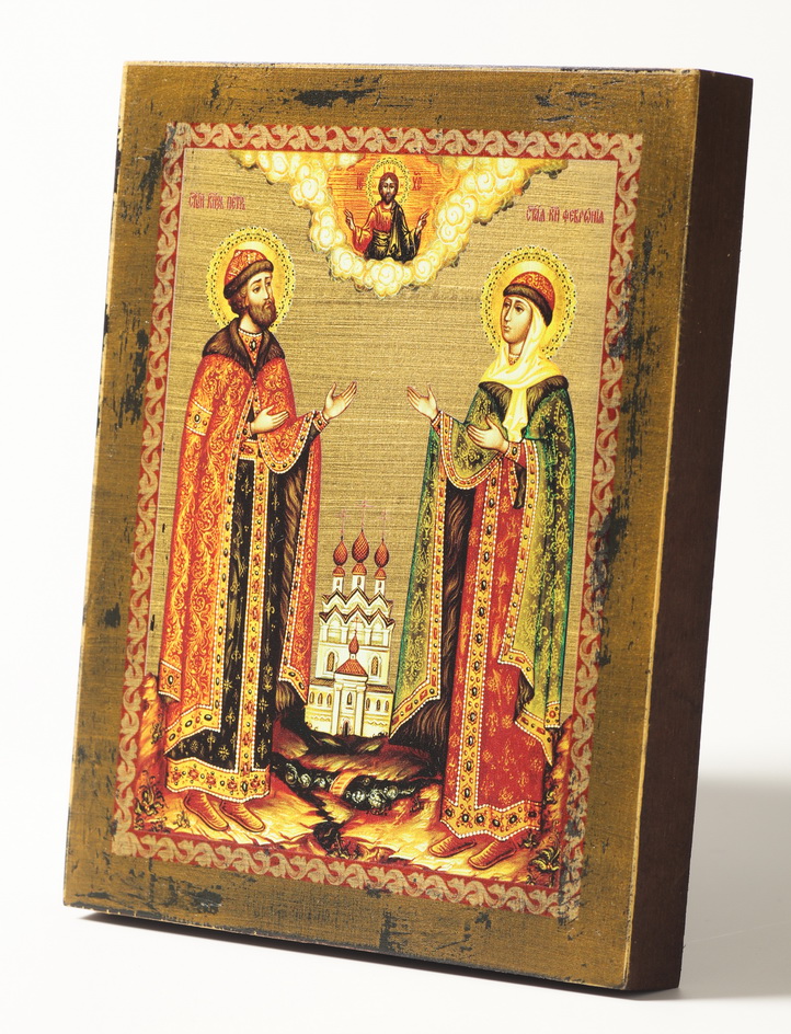 Икона на дереве 13х16 лак №2 Петр и Феврония