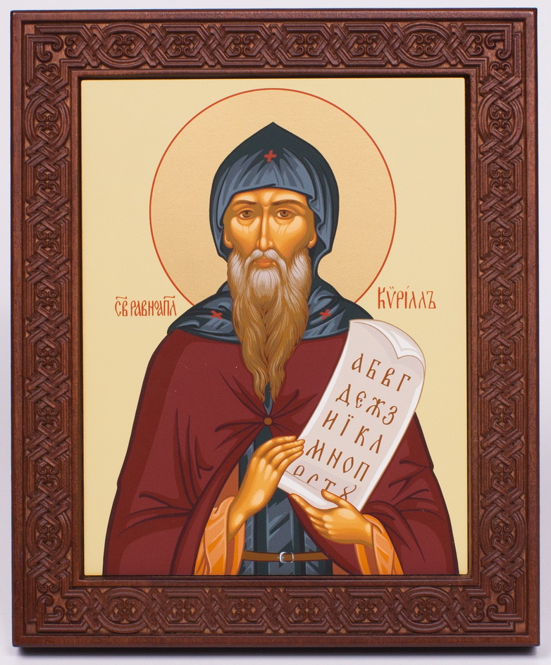 Икона на дереве 18х22 прокат, ковчег с резным обрамлением, упаковка Кирилл