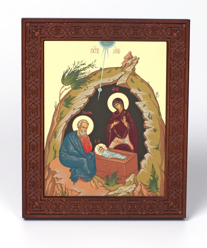 Икона на дереве 18х22 прокат, ковчег с резным обрамлением, упаковка Рождество Христово 2
