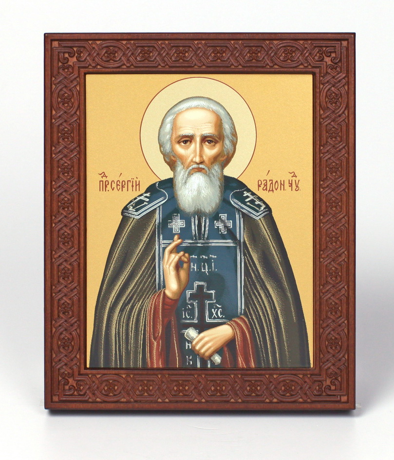 Икона на дереве 18х22 прокат, ковчег с резным обрамлением, упаковка Сергий Радонежский 1