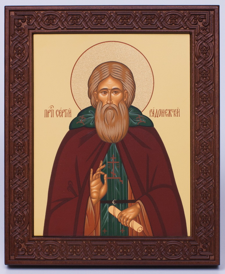Икона на дереве 18х22 прокат, ковчег с резным обрамлением, упаковка Сергий Радонежский