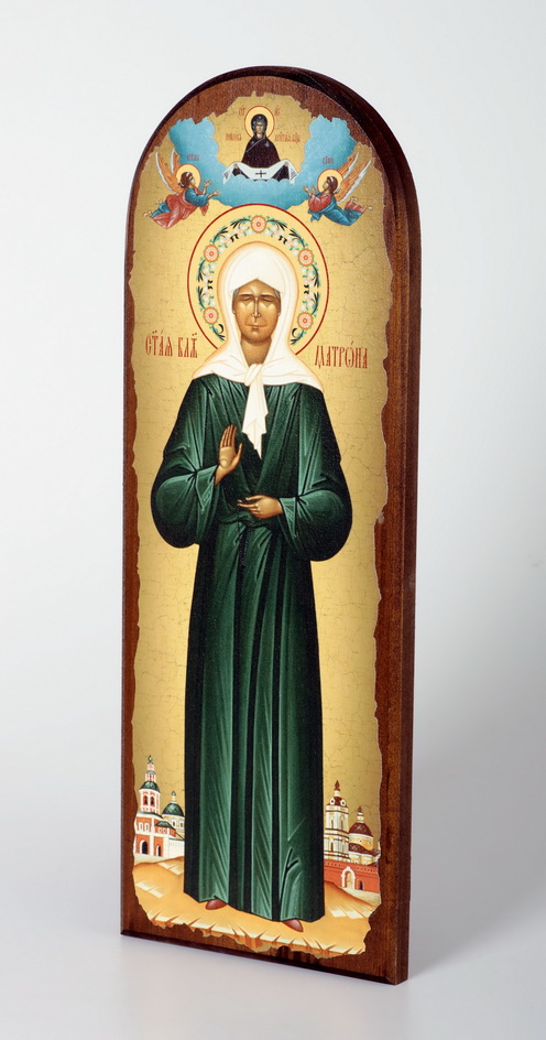 Икона на дереве 18х50 арочная, канвас, упаковка Матрона Московская (ростовая) с житием
