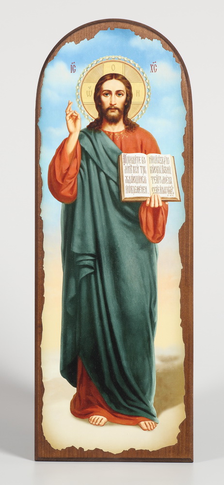 Икона на дереве 18х50 арочная, канвас, упаковка Спаситель
