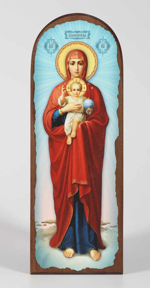 Икона на дереве 18х50 арочная, канвас, упаковка Валаамская БМ (голубой фон)
