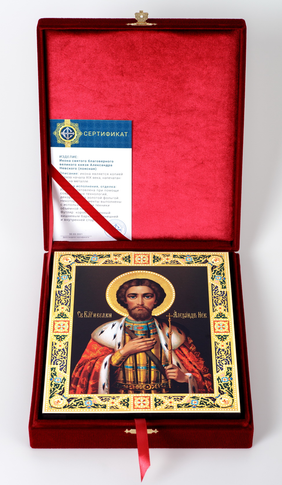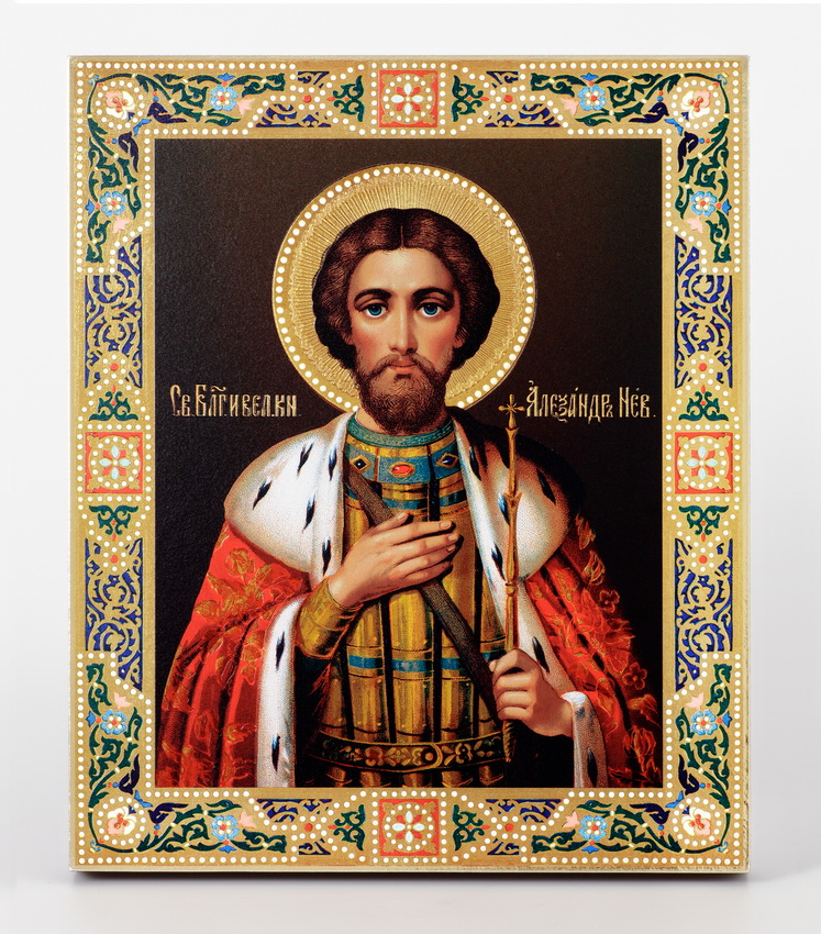 Икона на дереве 24х30 печать на плоттере в бархатном футляре Александр Невский