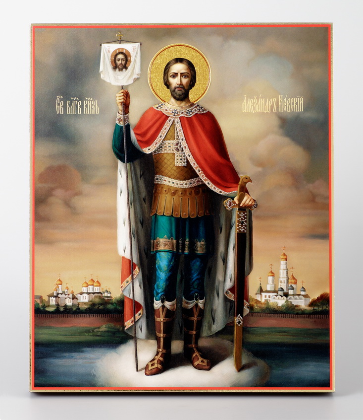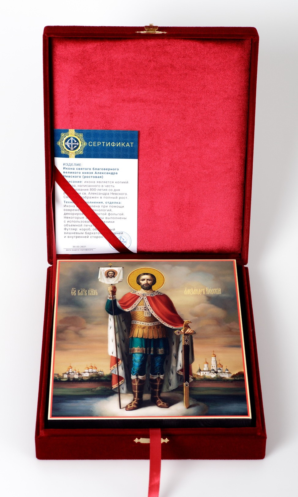 Икона на дереве 24х30 печать на плоттере в бархатном футляре Александр Невский (рост)