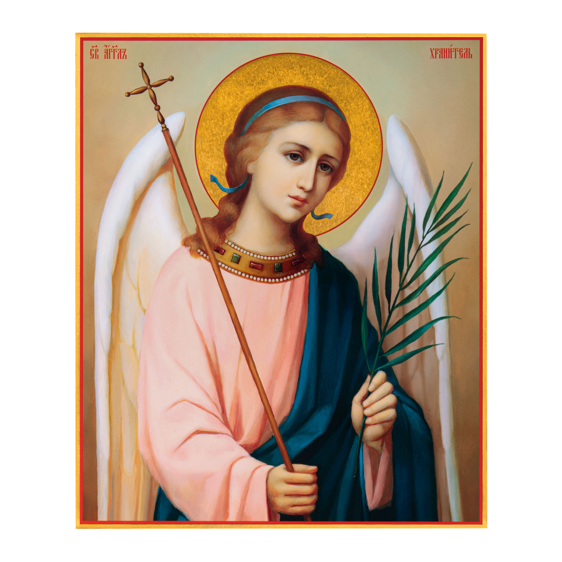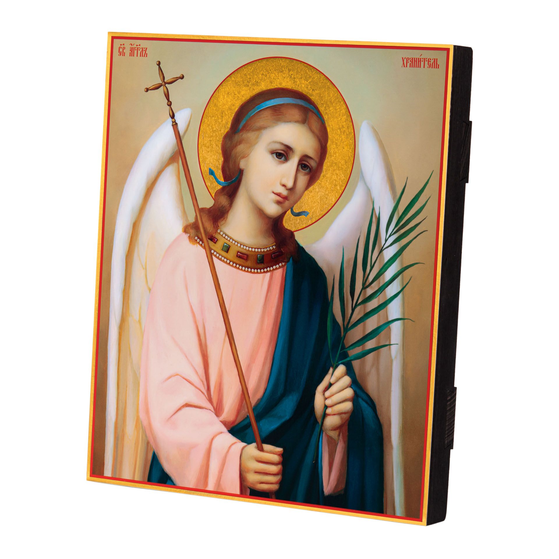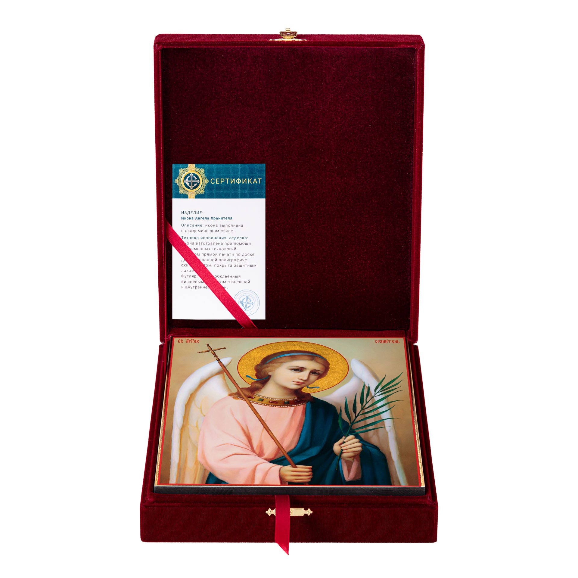 Икона на дереве 24х30 печать на плоттере в бархатном футляре Ангел-Хранитель