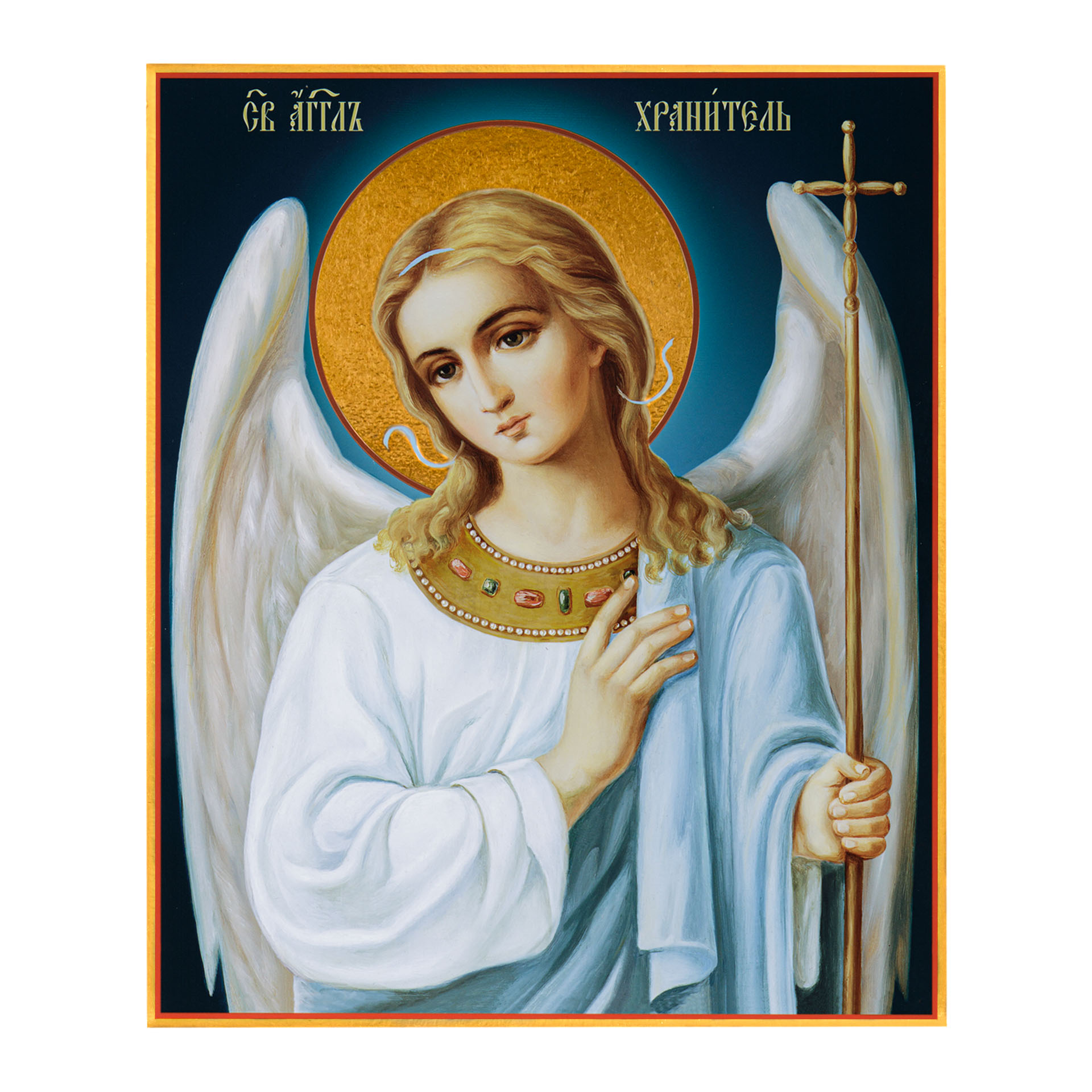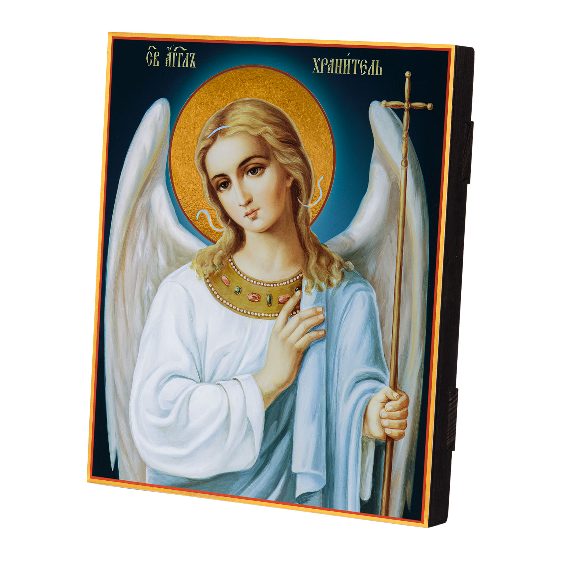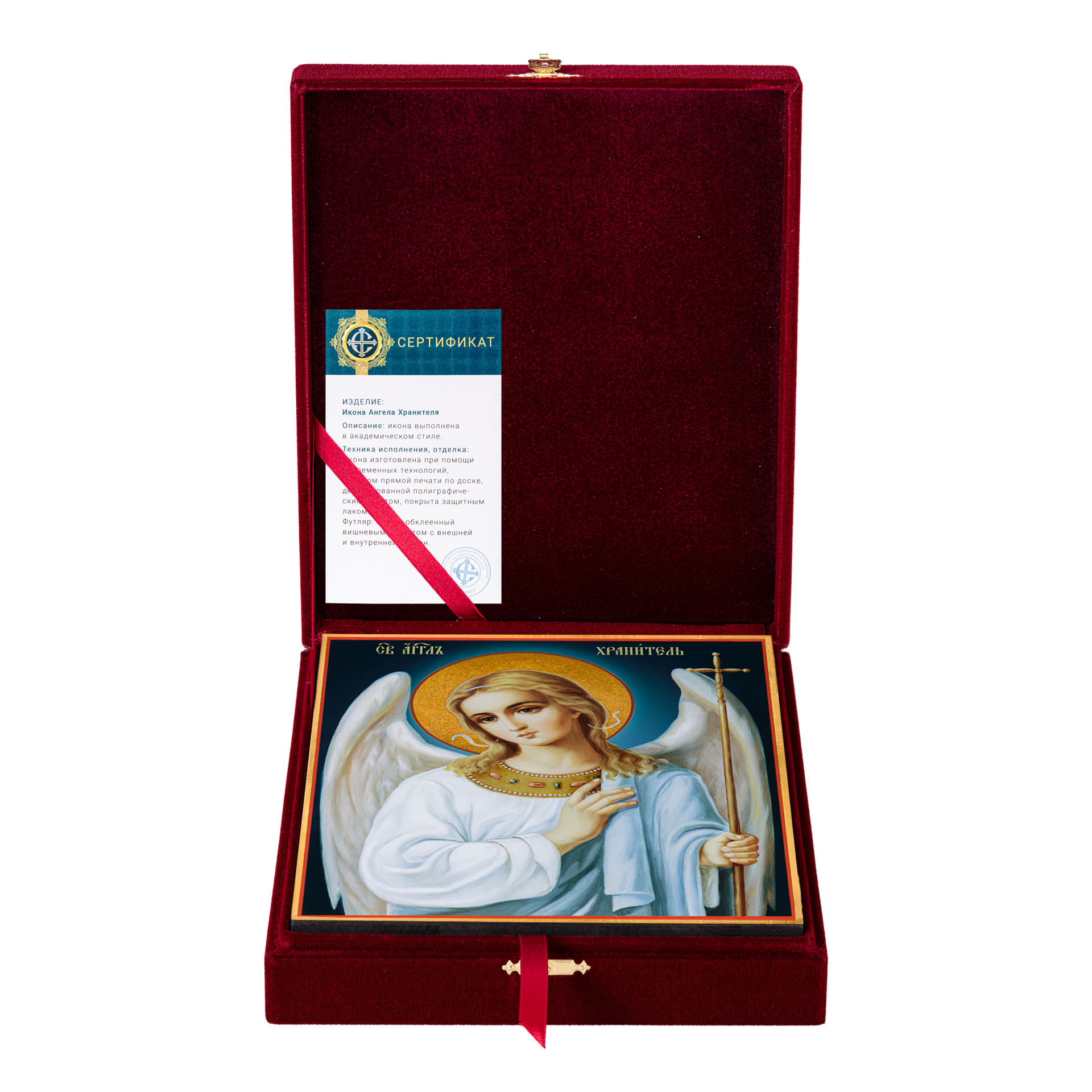 Икона на дереве 24х30 печать на плоттере в бархатном футляре Ангел-Хранитель (поясной)
