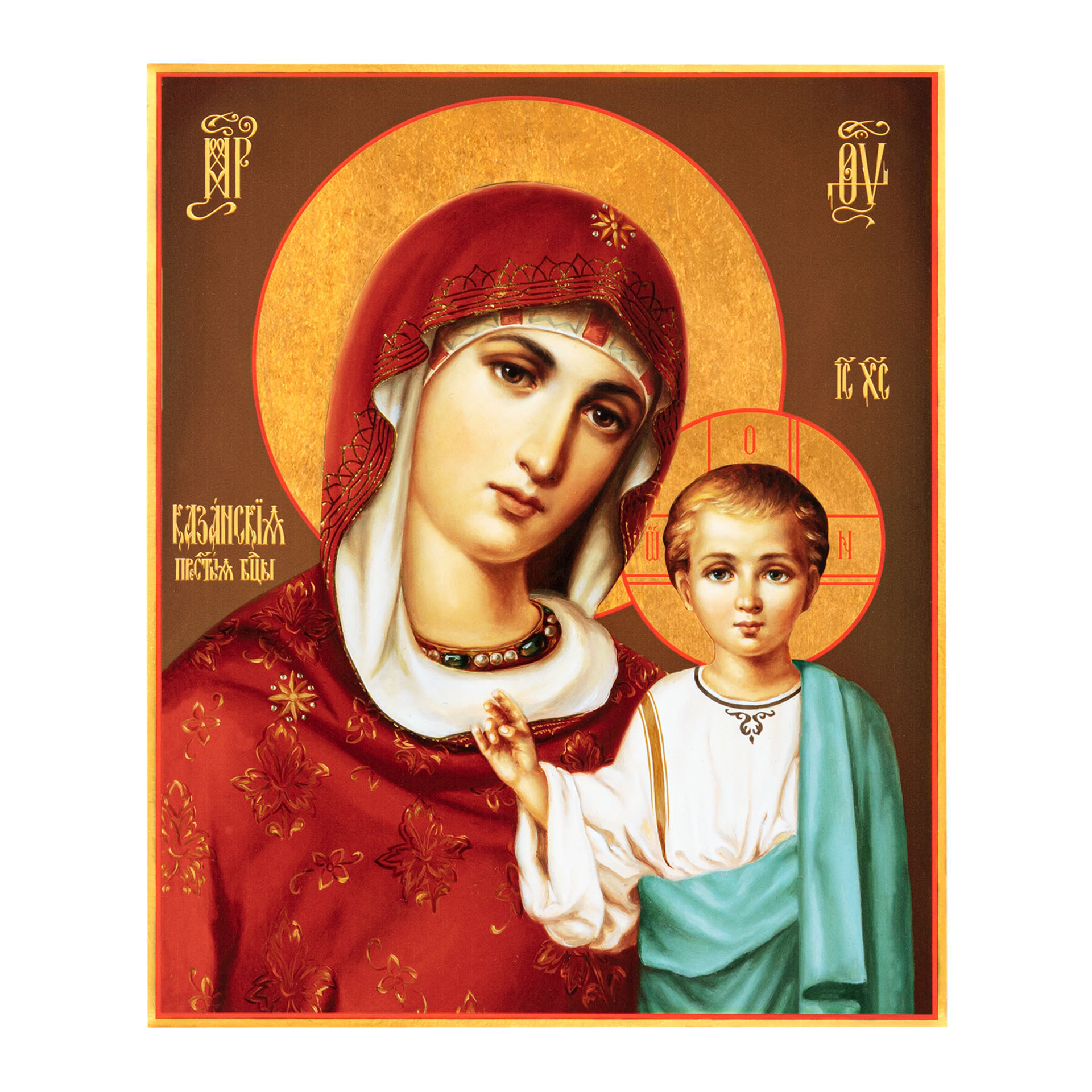 Икона на дереве 24х30 печать на плоттере в бархатном футляре Казанская БМ