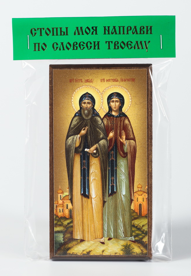 Икона на дереве 6х12 канвас, упаковка, ярлык Петр и Феврония