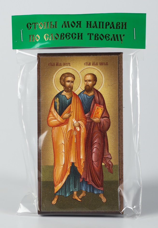 Икона на дереве 6х12 канвас, упаковка, ярлык Петр Павел 1
