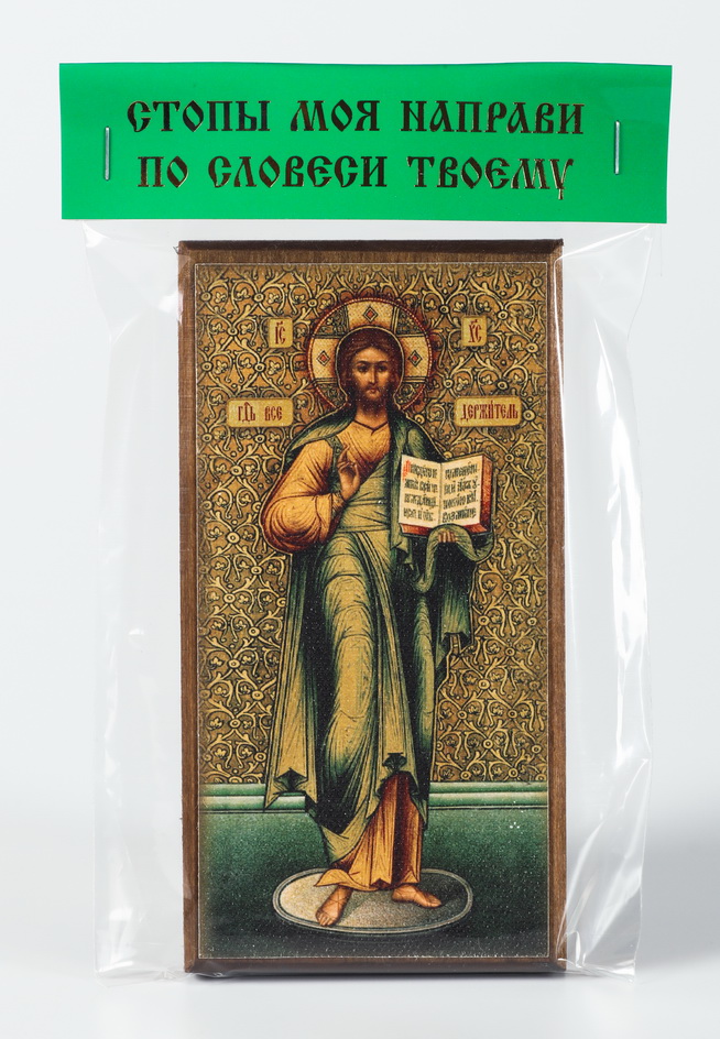 Икона на дереве 6х12 канвас, упаковка, ярлык Спаситель 2