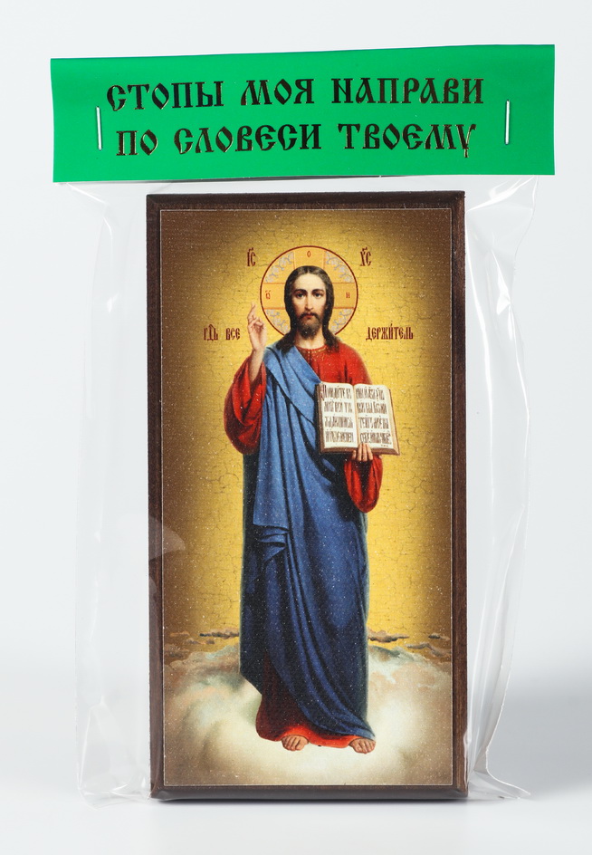 Икона на дереве 6х12 канвас, упаковка, ярлык Спаситель