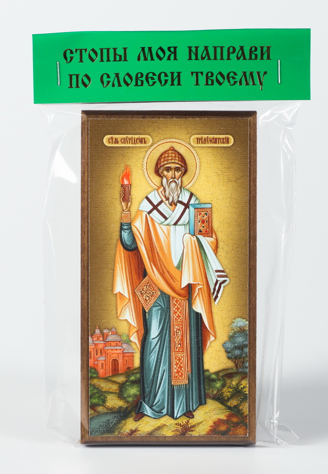 Икона на дереве 6х12 канвас, упаковка, ярлык Спиридон Тримифунтский