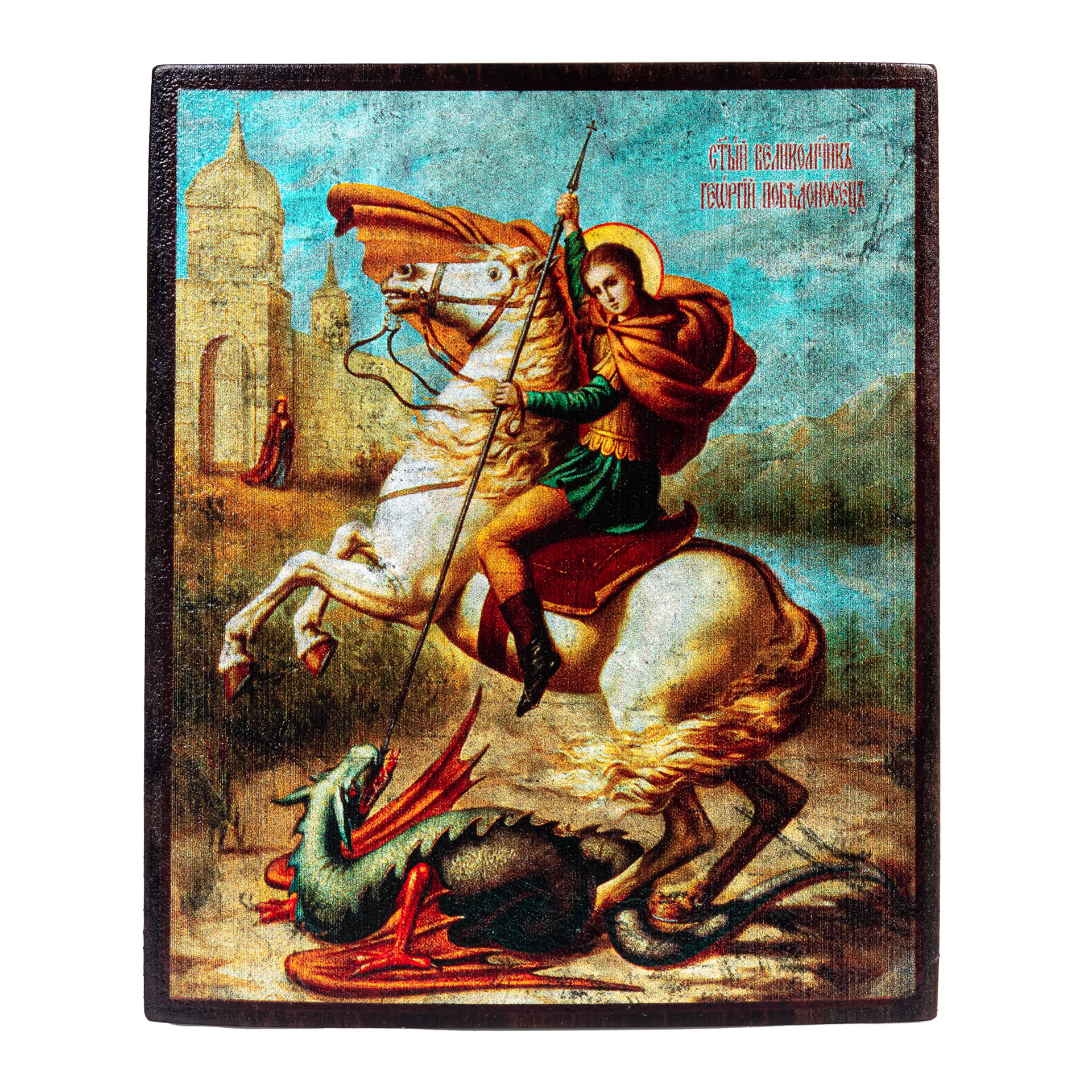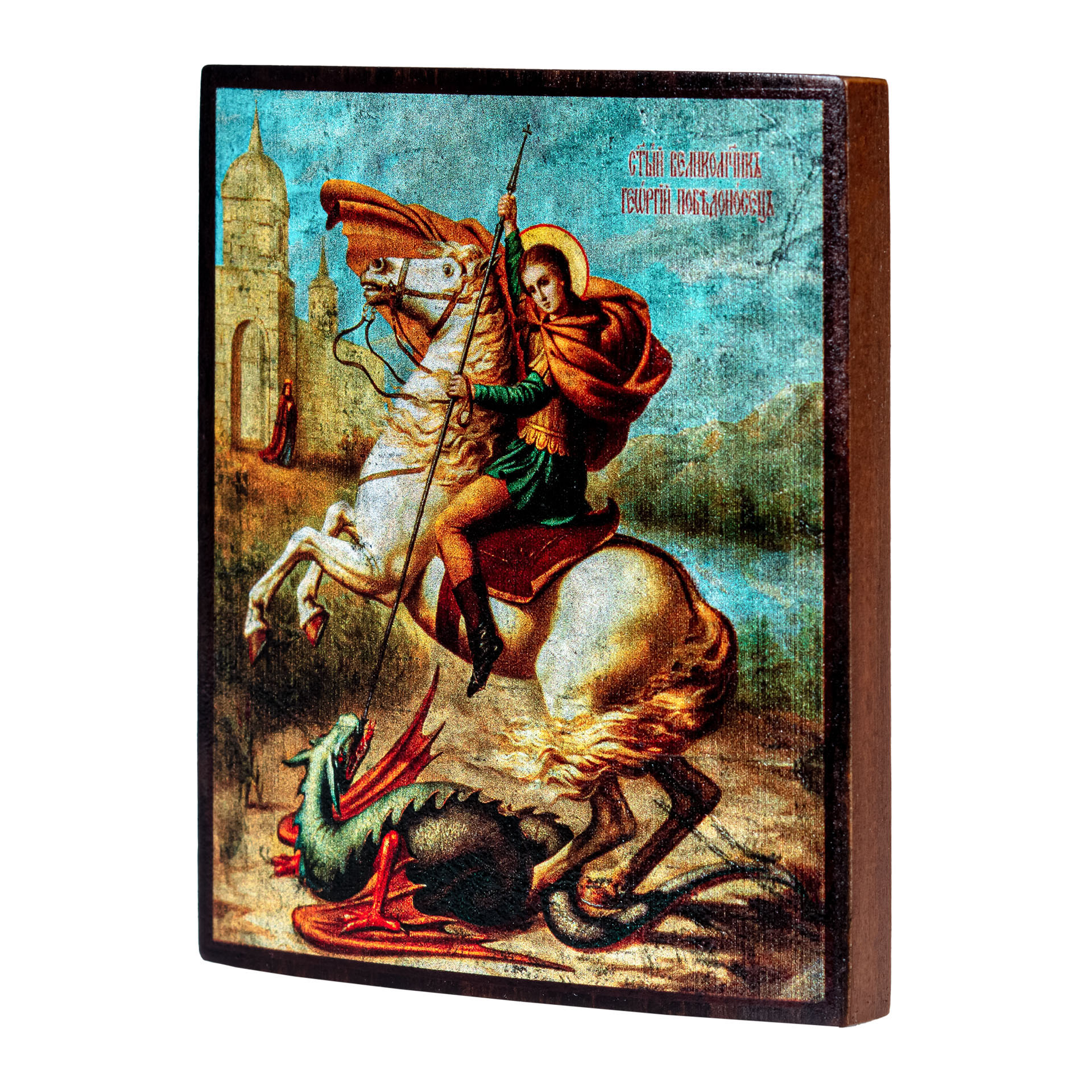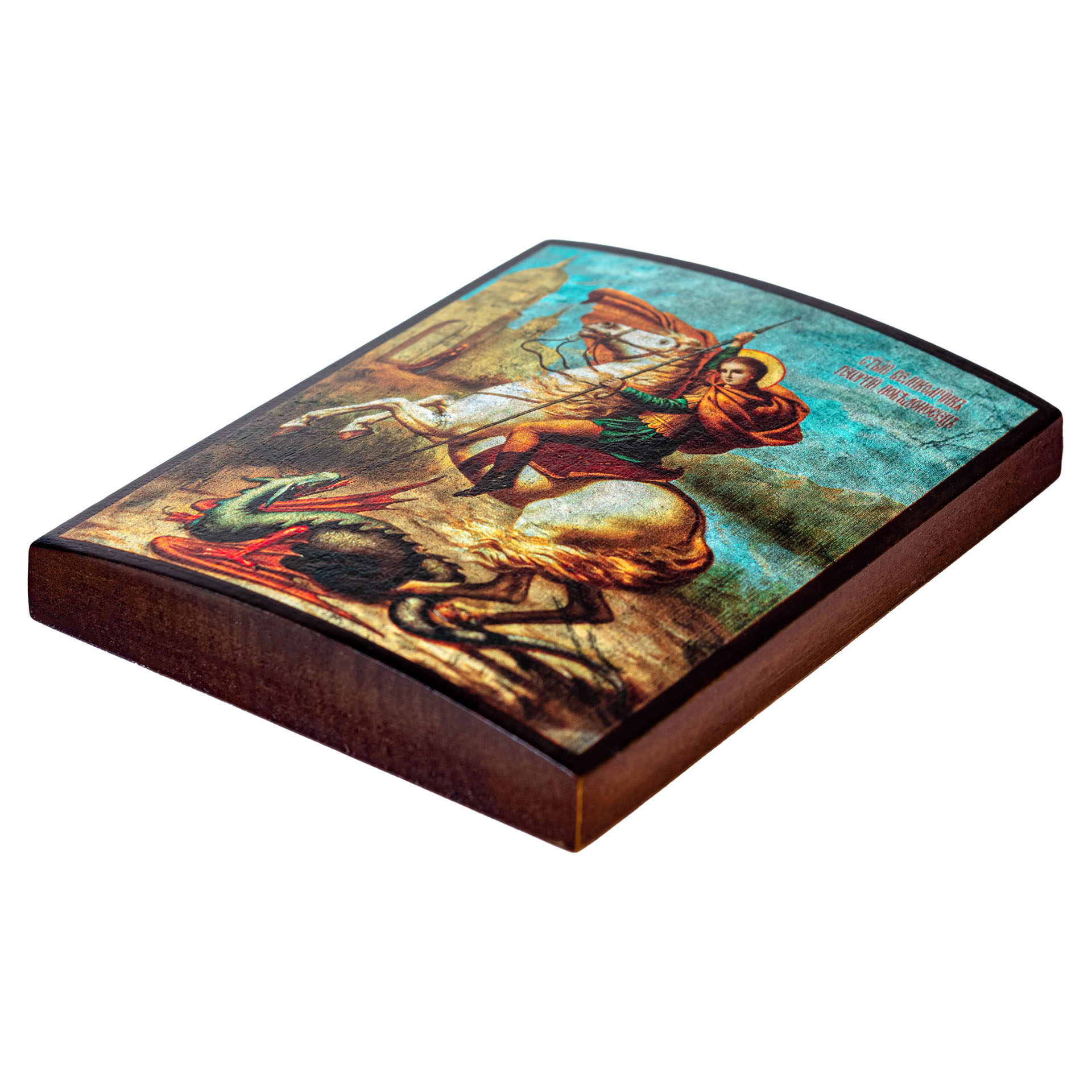 Икона на дереве 9х11 лак Чудо Георгия о змие