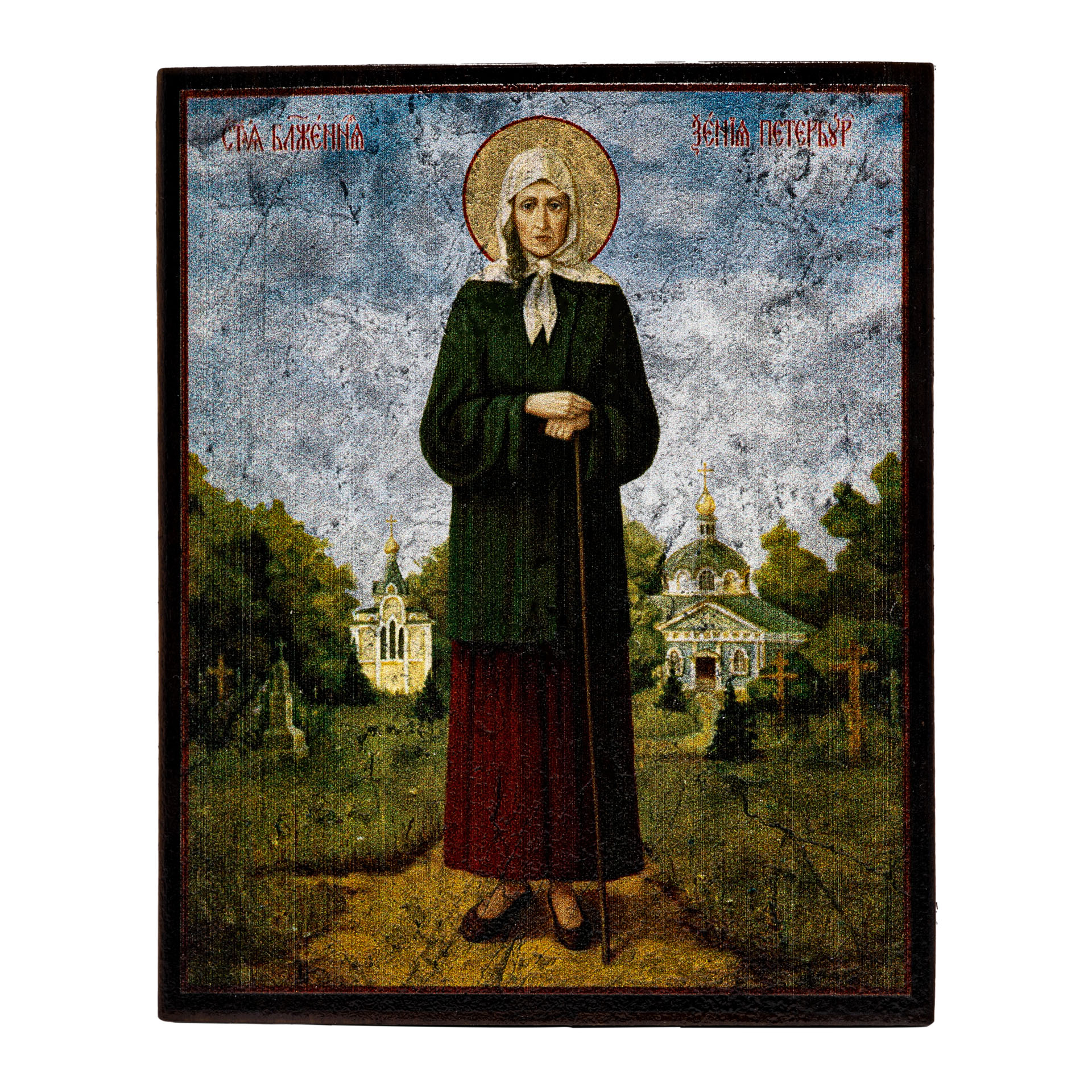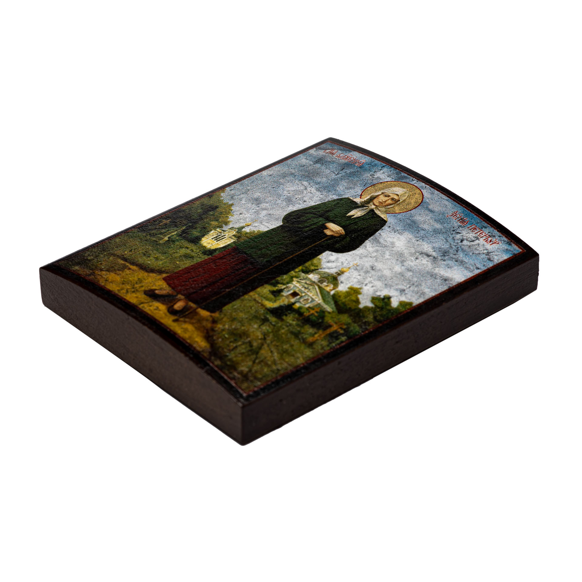 Икона на дереве 9х11 лак Ксения Петербургская (ростовая)