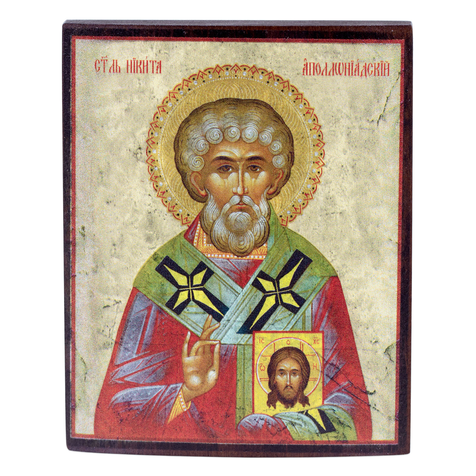 Икона на дереве 9х11 лак Никита