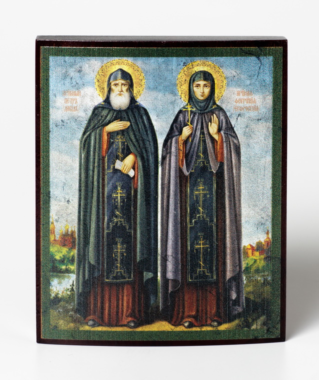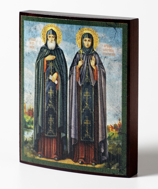 Икона на дереве 9х11 лак Петр и Феврония 2