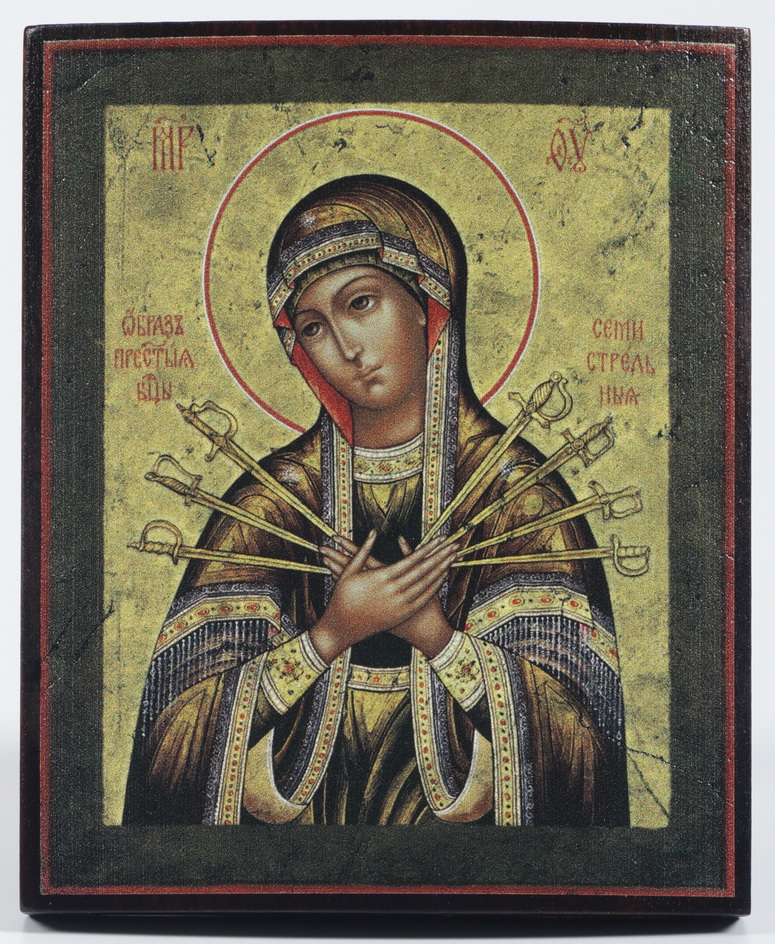 Икона на дереве 9х11 лак Семистрельная БМ